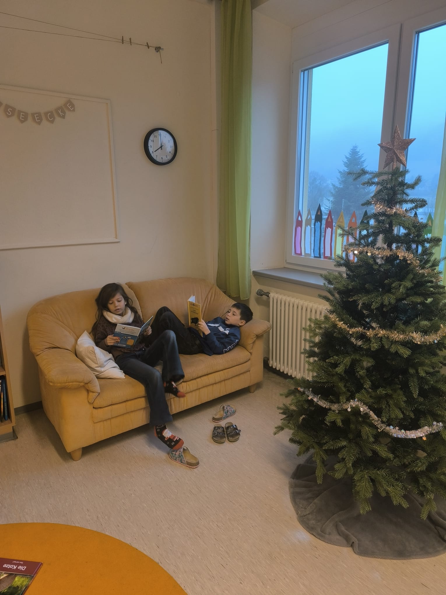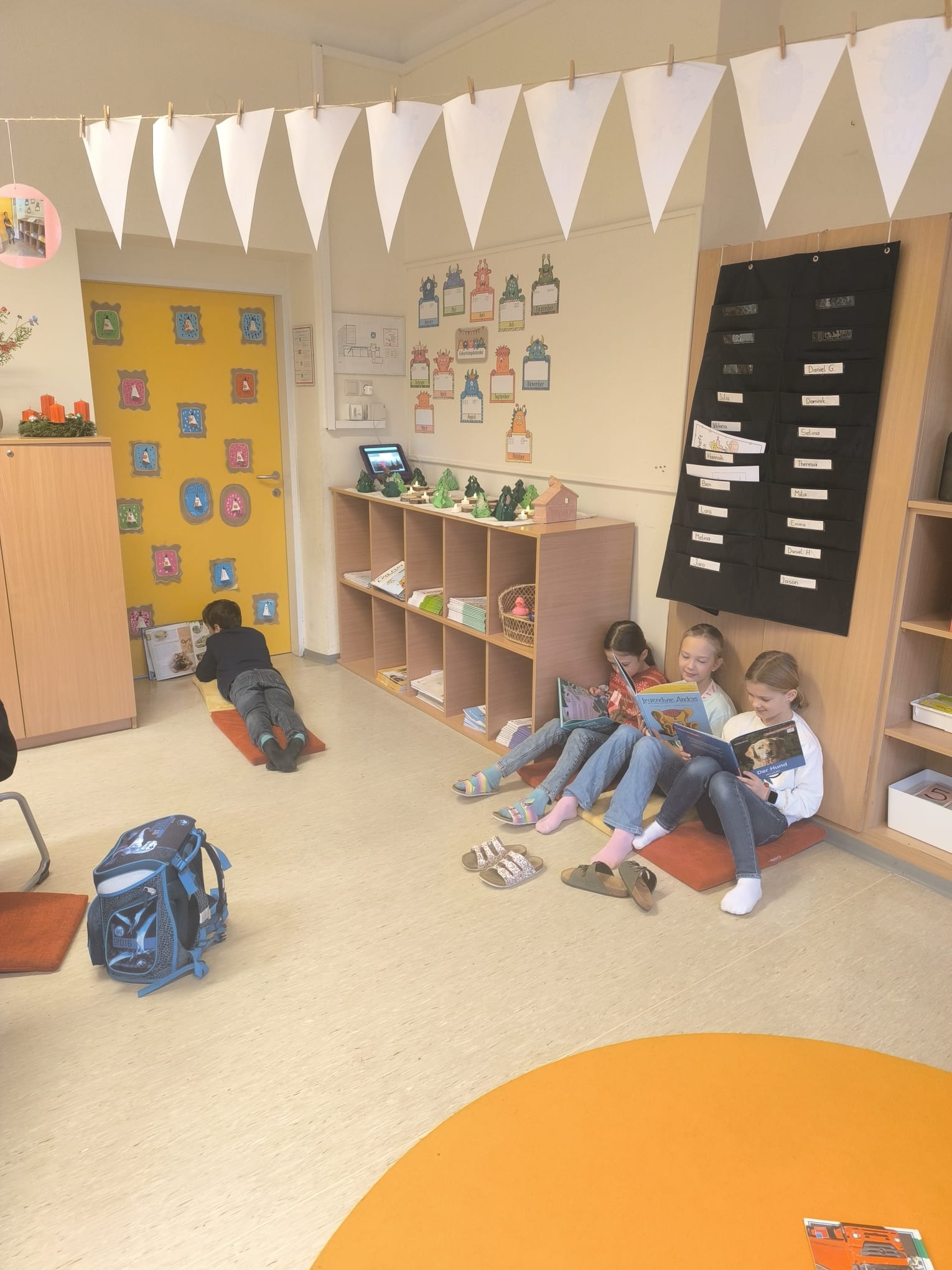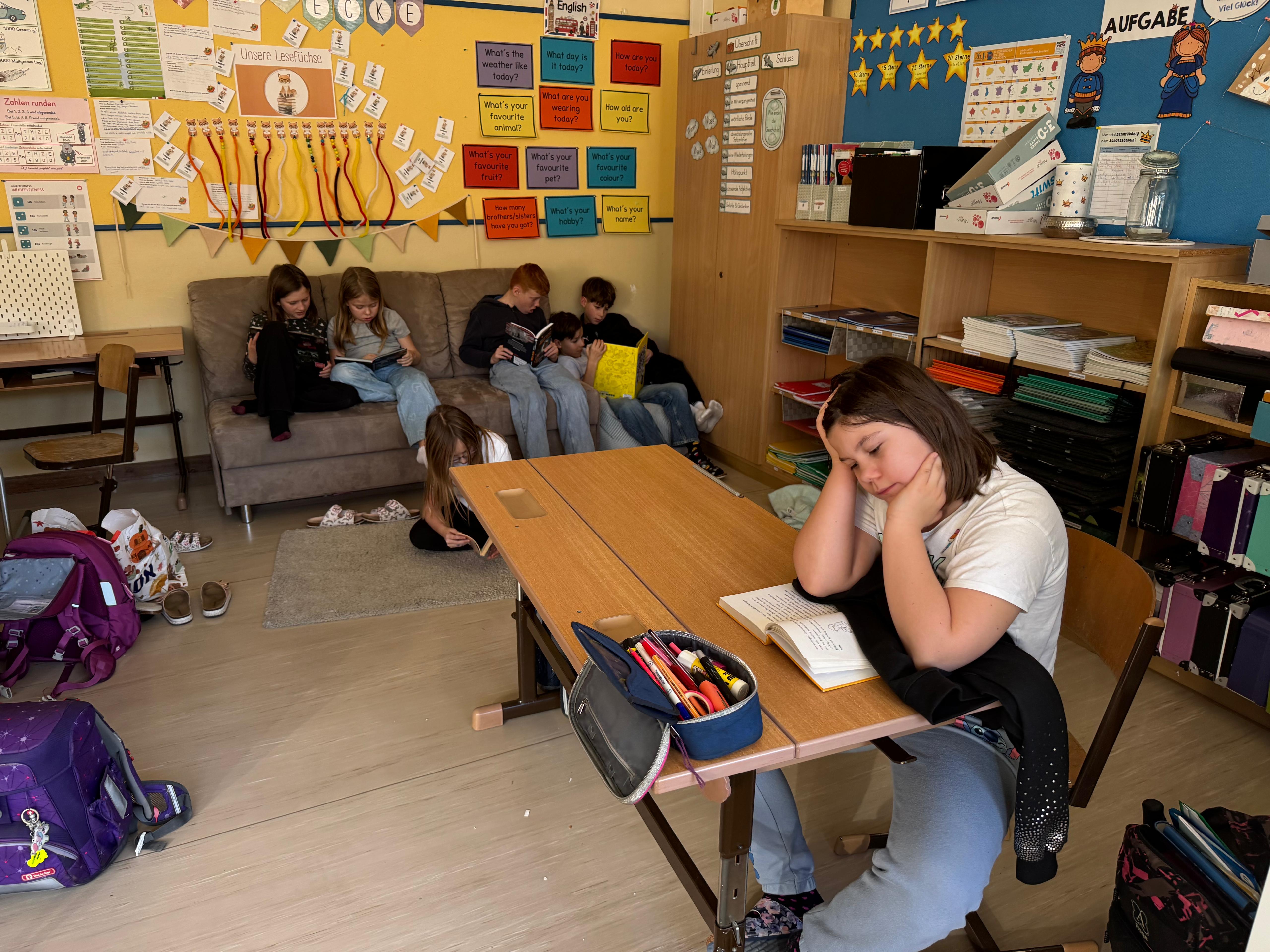 In diesem Sinne nehmen sich die Kinder ganz bewusst eine halbe Stunde Zeit zum Lesen.