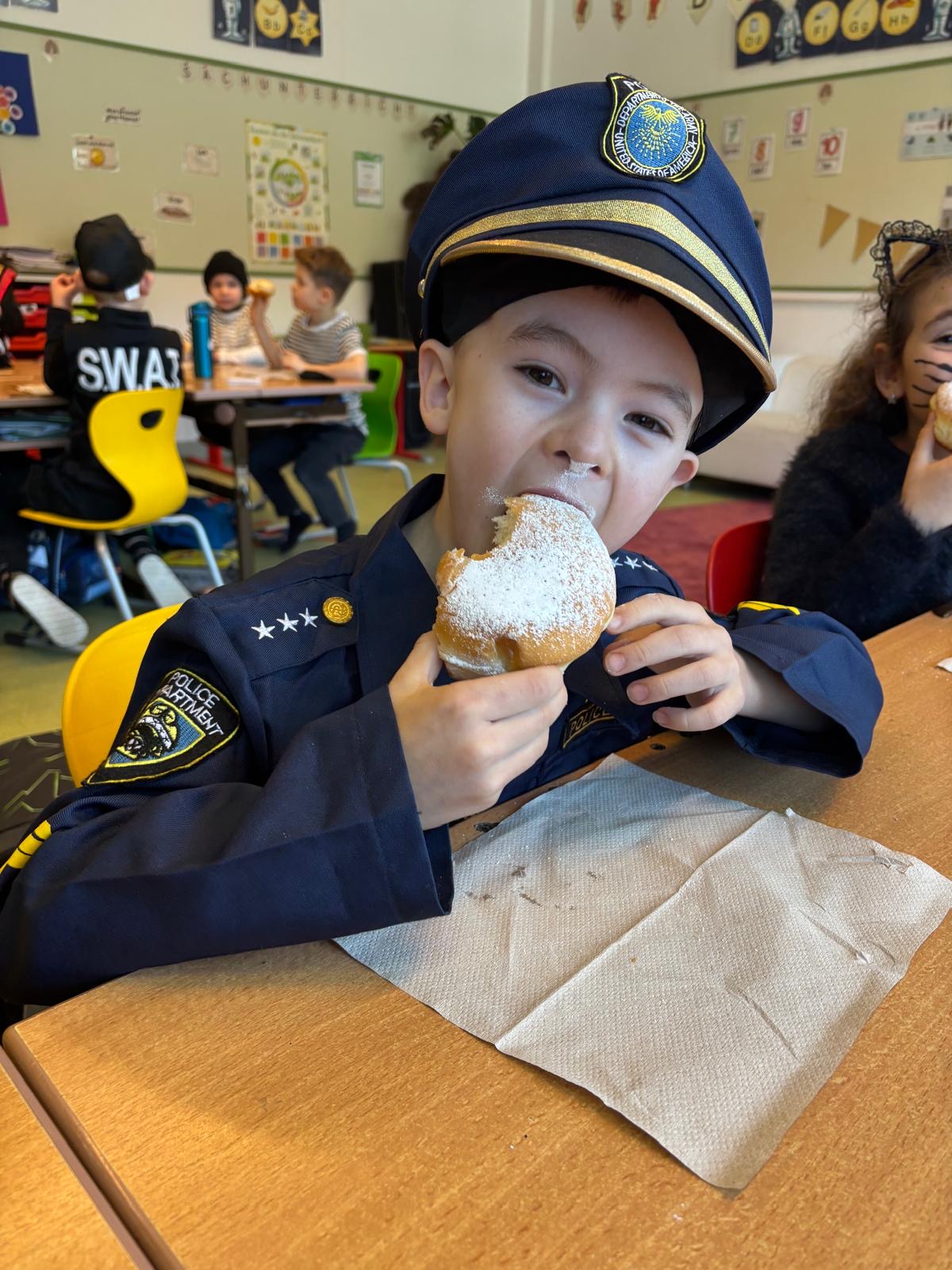 Natürlich durften auch die traditionellen Faschingskrapfen nicht fehlen! Ein herzliches Dankeschön an die Gemeinde Anger und an unseren Bürgermeister Hannes Grabner für die großzügige Krapfenspende, die allen Kindern den Tag zusätzlich versüßt hat.