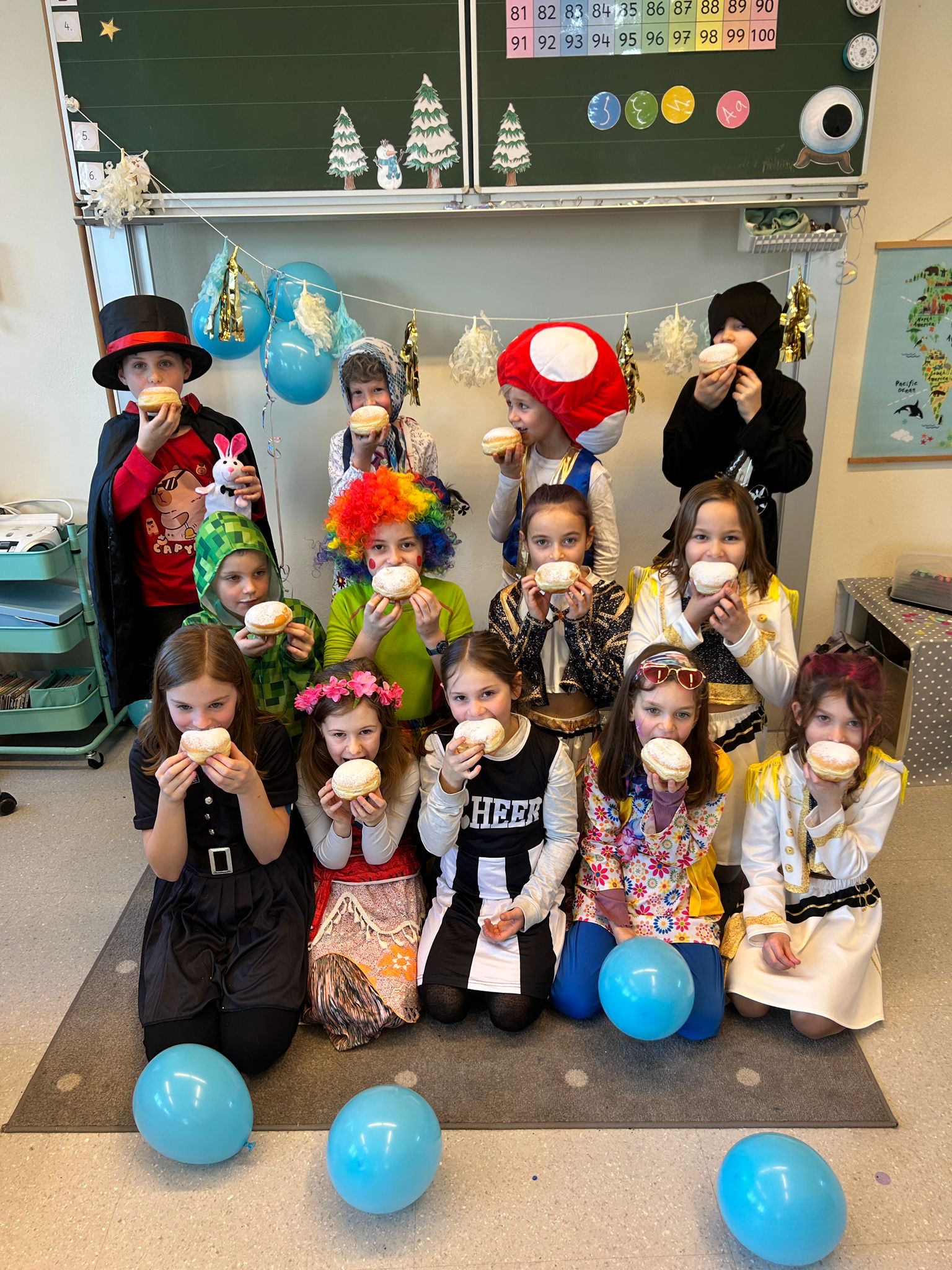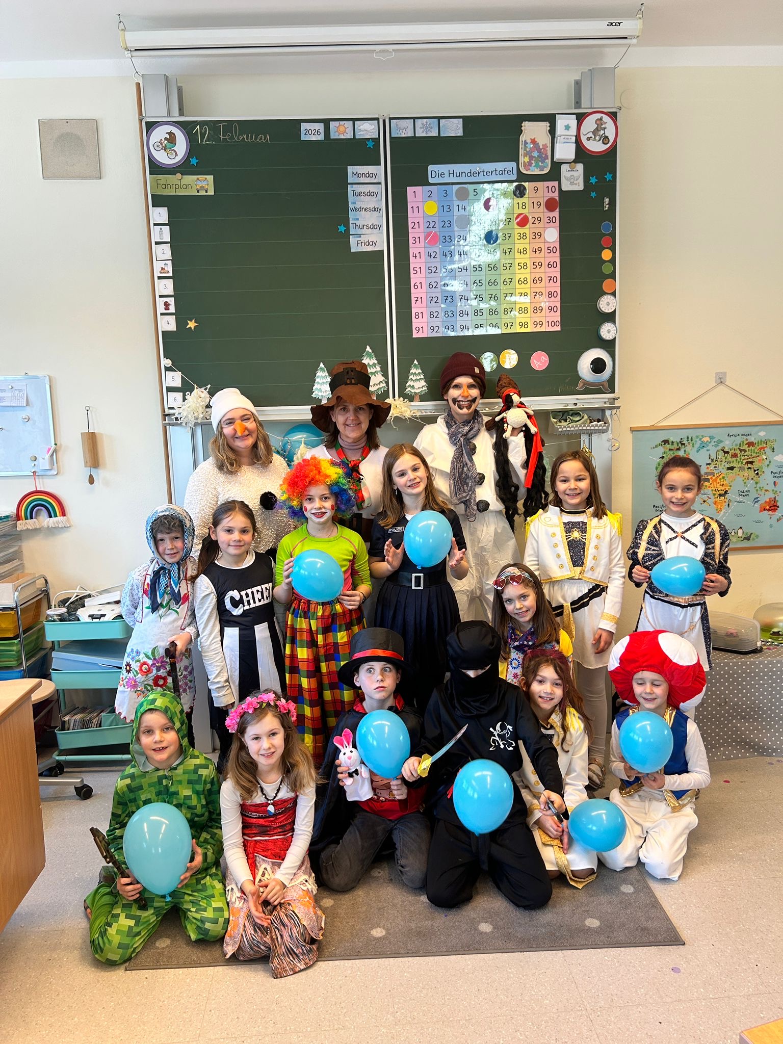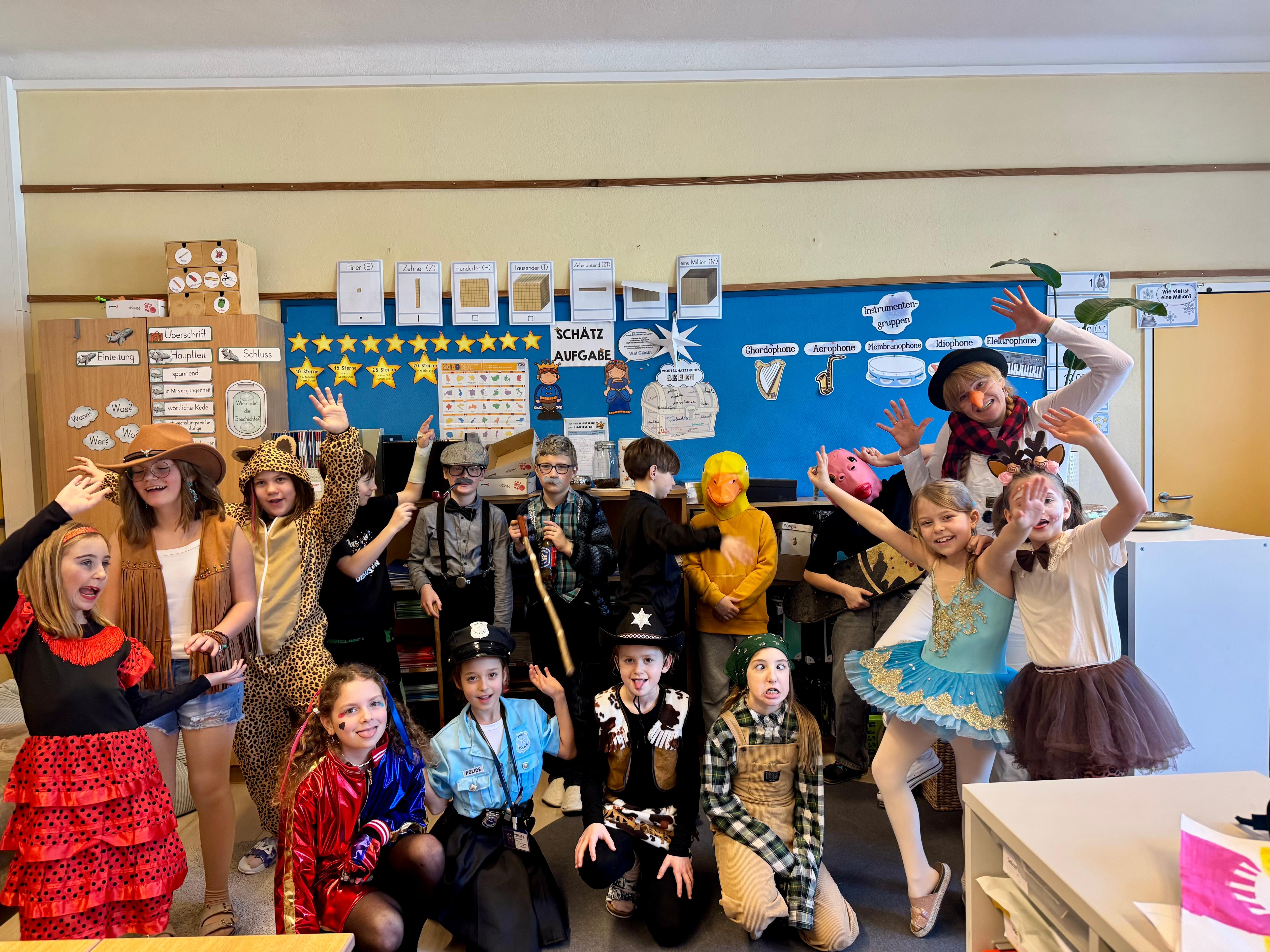Beim diesjährigen Faschingsfest verwandelte sich unsere Schule in eine bunte Narrenwelt: Clowns, Superhelden, Tiere und viele andere lustige Masken sorgten für beste Stimmung in den Klassen und Gängen. Gemeinsam wurde getanzt, gelacht und gefeiert.