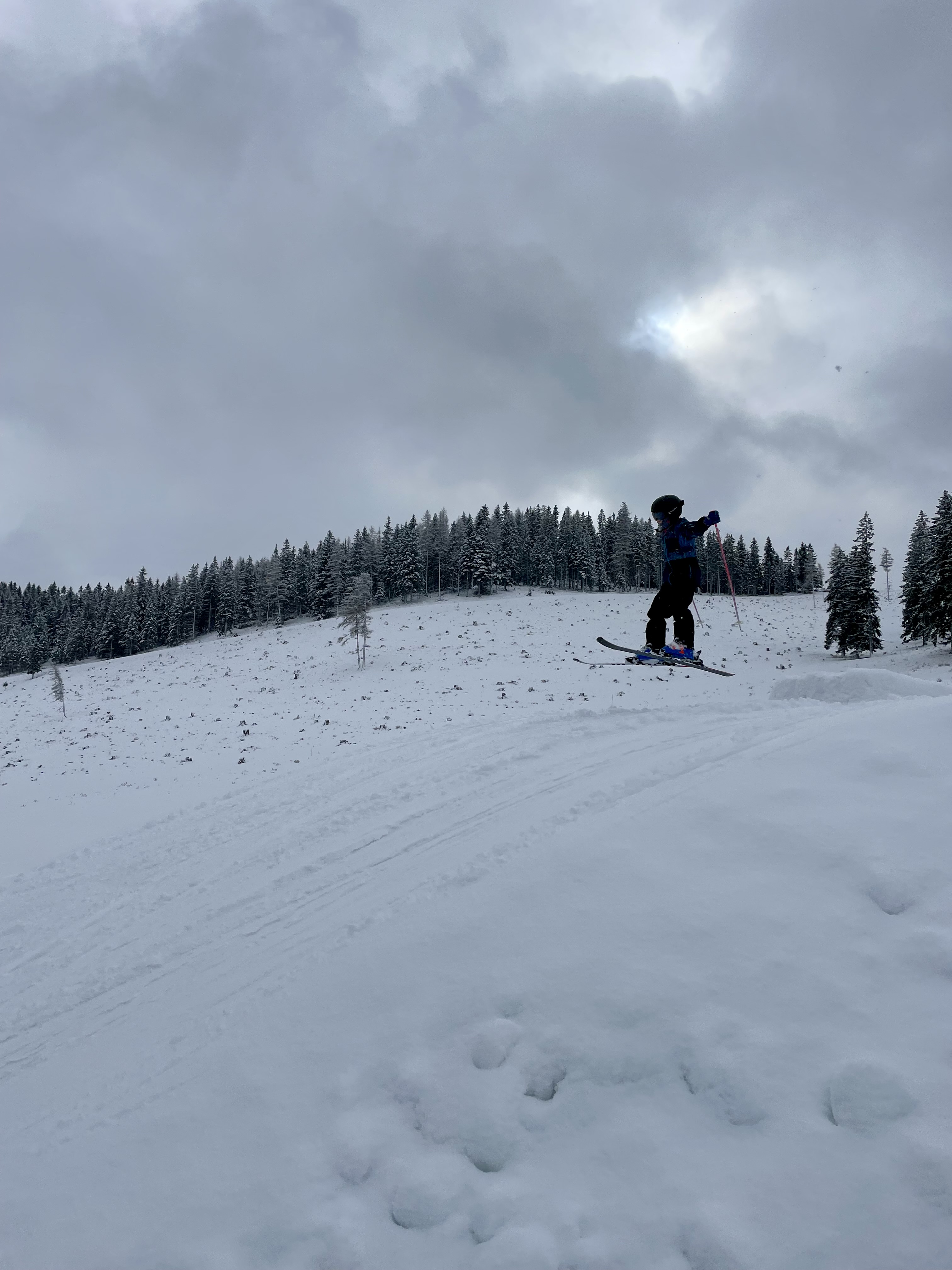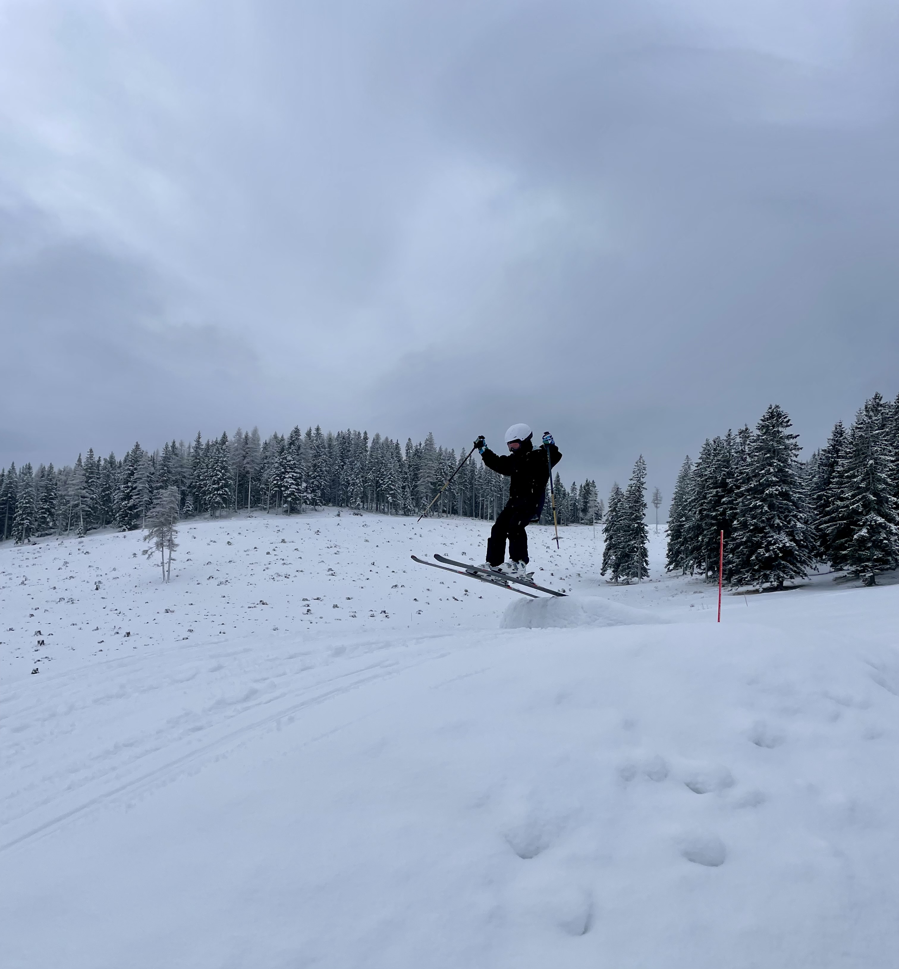 Bei leichtem Schneefall und frischem Neuschnee herrschte echte Winterstimmung auf der Alm. Die Schifahrer*innen genossen die fast menschenleere Piste in vollen Zügen.