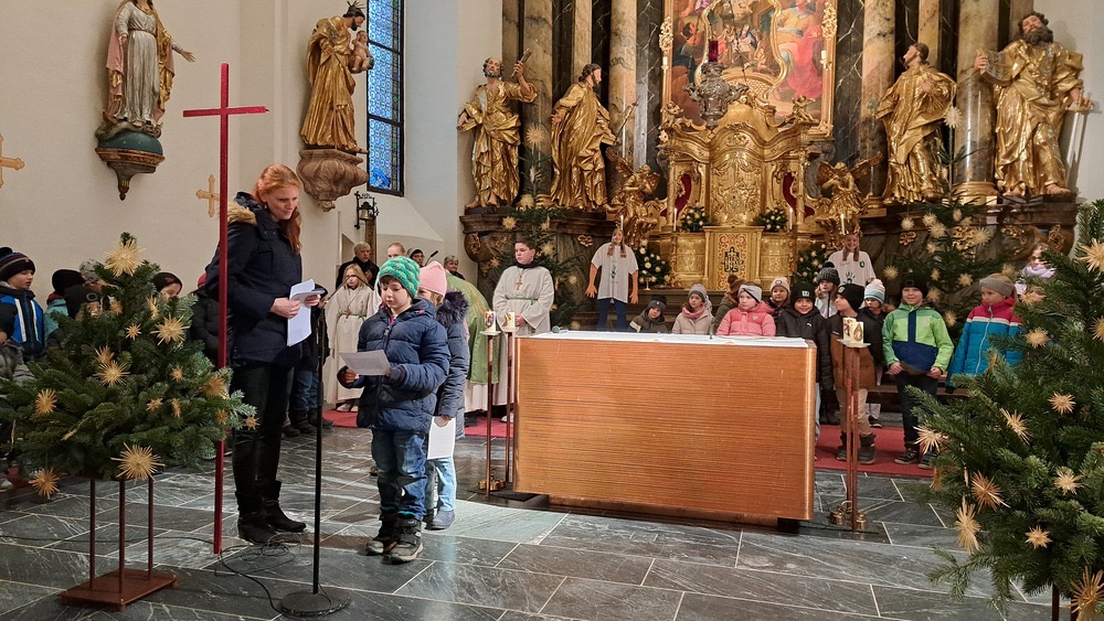 Beim Vorstellungsgottesdienst durften sich die Erstkommunionskinder der 2. Klassen der Pfarrgemeinde vorstellen. Mit Liedern, Gebeten und kleinen Beiträgen zeigten die Kinder, dass sie sich schon auf die Erstkommunion freuen. Gemeinsam feierten alle einen fröhlichen und stimmungsvollen Gottesdienst und machten den Beginn dieses besonderen Weges sichtbar.