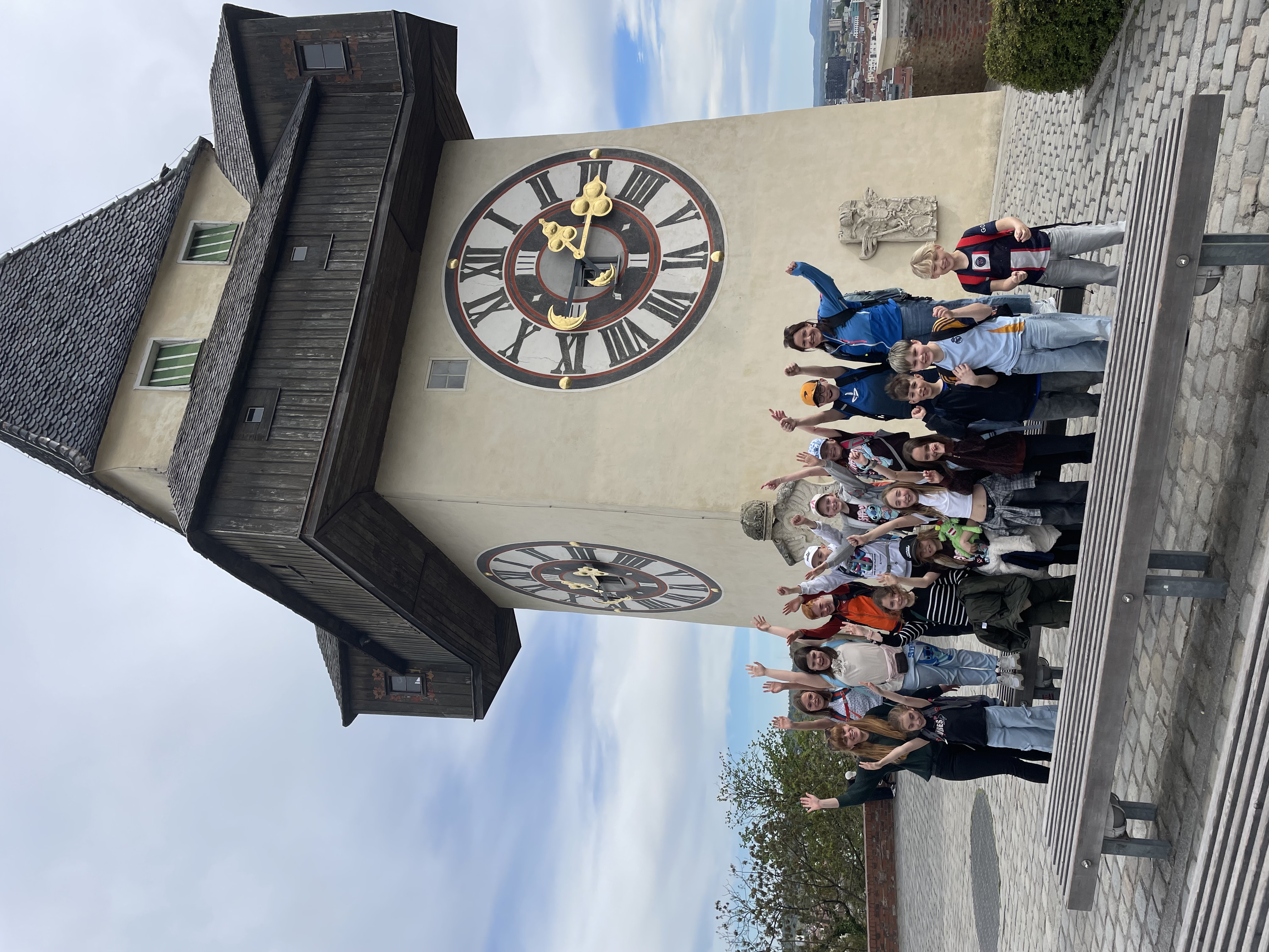 Anschließend ging es auf den Schlossberg, wo die Kinder bei einer Führung viel über die Geschichte von Graz erfuhren. Besonders beeindruckend waren der Glockenturm und die Kasematten. Ein weiteres Highlight war das 4D-Kino, bevor die Kinder mit großer Begeisterung die Schlossbergrutsche ausprobierten – ein Erlebnis, das für viel Spaß sorgte.