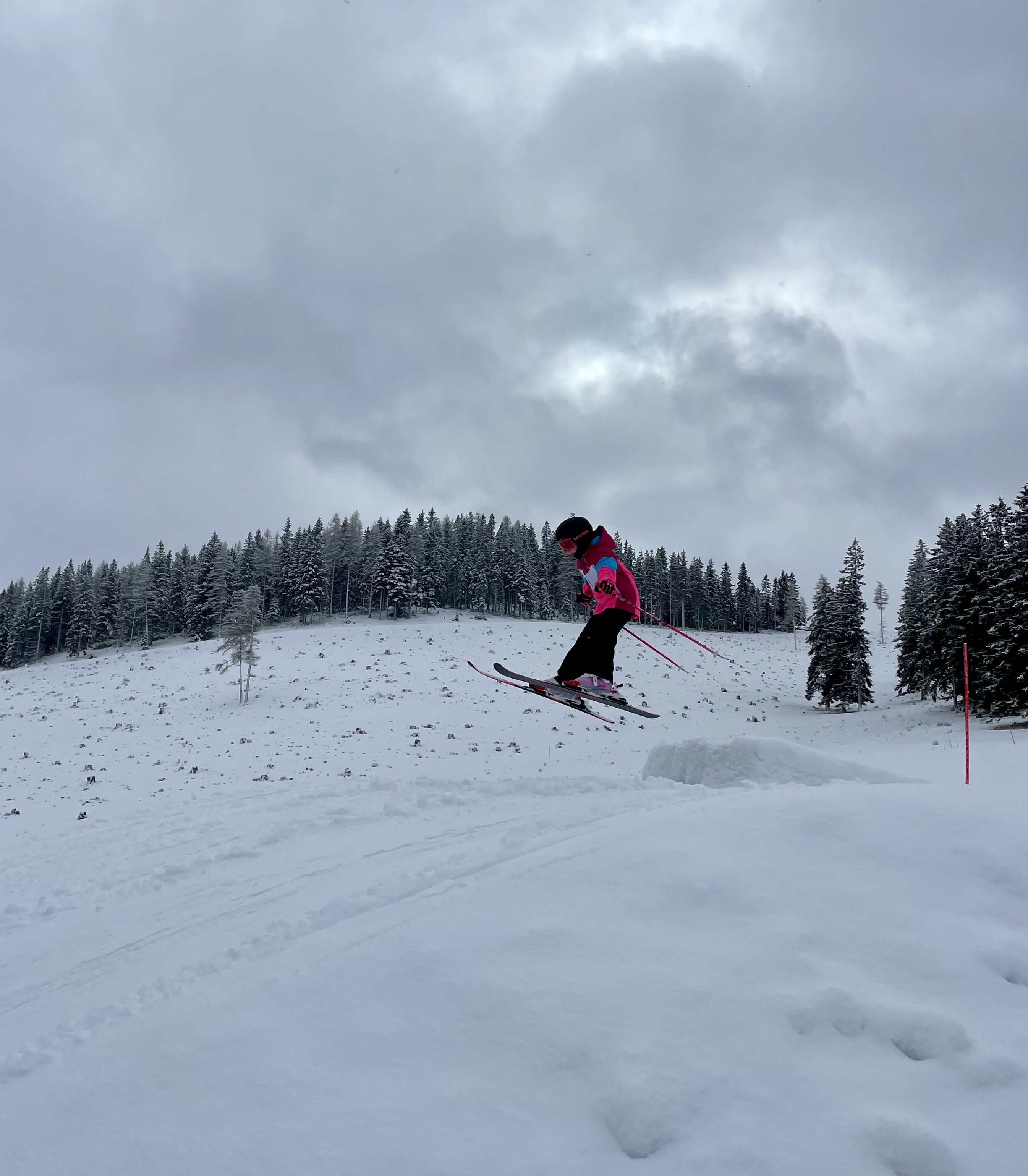 Bei leichtem Schneefall und frischem Neuschnee herrschte echte Winterstimmung auf der Alm. Die Schifahrer*innen genossen die fast menschenleere Piste in vollen Zügen.