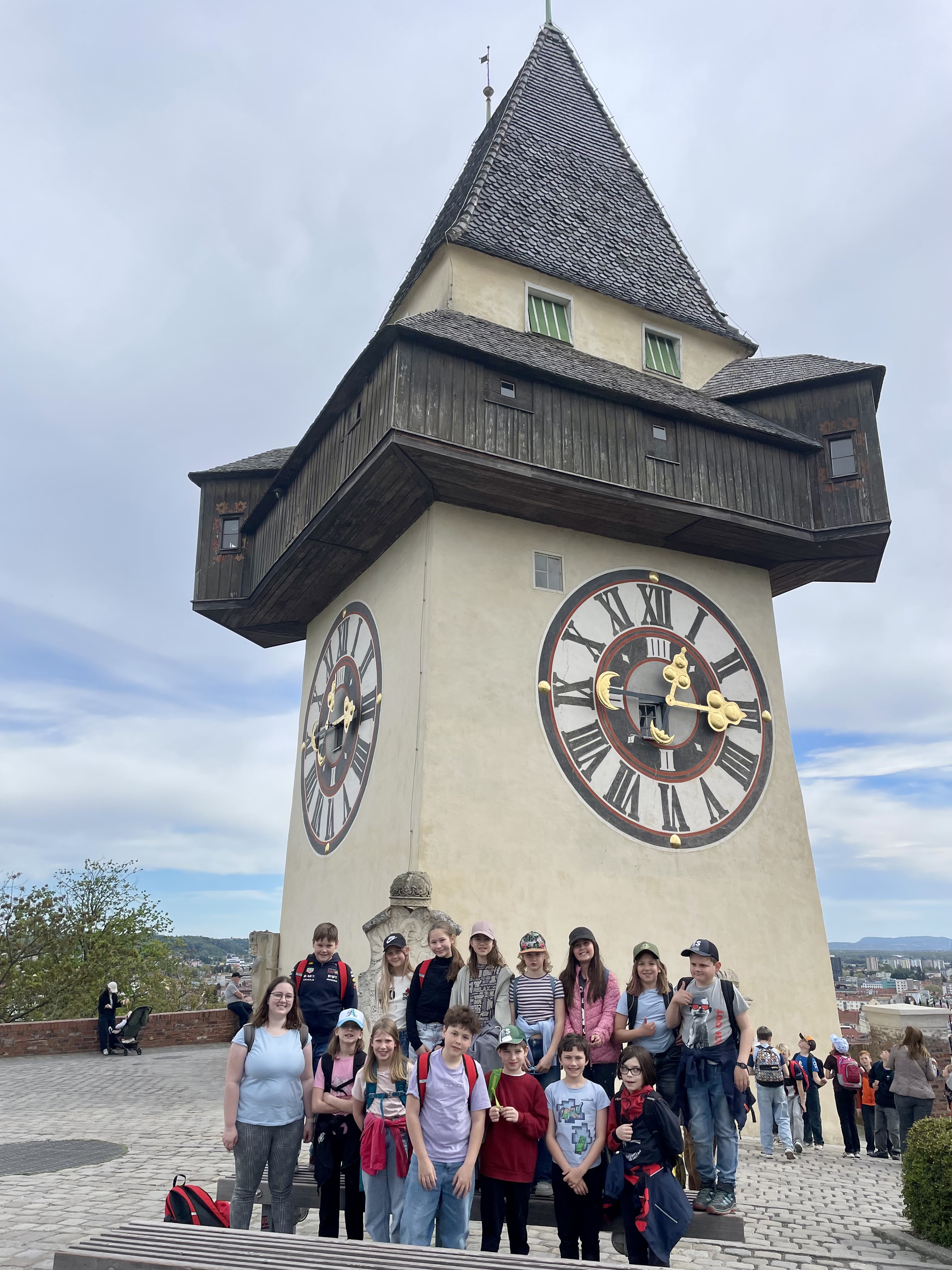 Anschließend ging es auf den Schlossberg, wo die Kinder bei einer Führung viel über die Geschichte von Graz erfuhren. Besonders beeindruckend waren der Glockenturm und die Kasematten. Ein weiteres Highlight war das 4D-Kino, bevor die Kinder mit großer Begeisterung die Schlossbergrutsche ausprobierten – ein Erlebnis, das für viel Spaß sorgte.