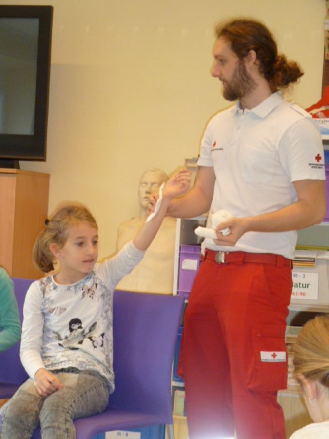 Geleitet wurde dieses Projekt von Dipl. Päd. Margit Schreck, den praktischen Teil übernahm der Lehrbeauftragte und Rettungssanitäter Niklas Haider.