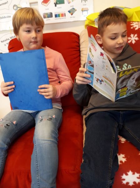Die Kinder der 1b und 4a Klasse treffen sich in regelmäßigen Abständen, um sich gegenseitig vorzulesen.