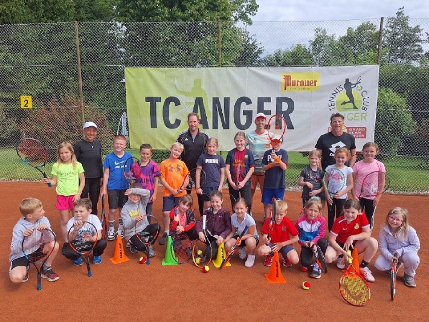 Am Donnerstag, dem 23. Mai 2024, machten sich bei Schönwetter insgesamt 20 Kinder der VS Anger zu einem Schnuppertraining zur Angerer Tennisanlage auf. Drei namhafte Trainer des örtlichen Tennisclubs führten unter der Leitung von Christian Holzer durch die knapp zweistündige und überaus reichhaltige Trainingseinheit. Die Kinder, eingeteilt in drei unterschiedliche Leistungsstufen, erlebten vielfach Freude und tauchten in die Vielfältigkeit eines bunt gestalteten Schnuppertrainings ein. Wesentliche Inhaltspunkte waren der kindgerechte Umgang mit dem Tennisschläger, Feingefühl für den Tennisball, Grundlagen der Schlagtechniken und abschließende Tennisübungen. Die Begeisterung war während des Trainings groß. Zum Abschluss zeigten mehrere Kinder sämtlicher Schulstufen ihr Interesse für eine Fortsetzung beim bevorstehenden Camp in den Schulferien. Die VS Anger bedankt sich für die begonnene Kooperation mit dem TC Anger – ein wiederkehrendes Schnuppertraining ist für das kommende Schuljahr bereits eingeplant.